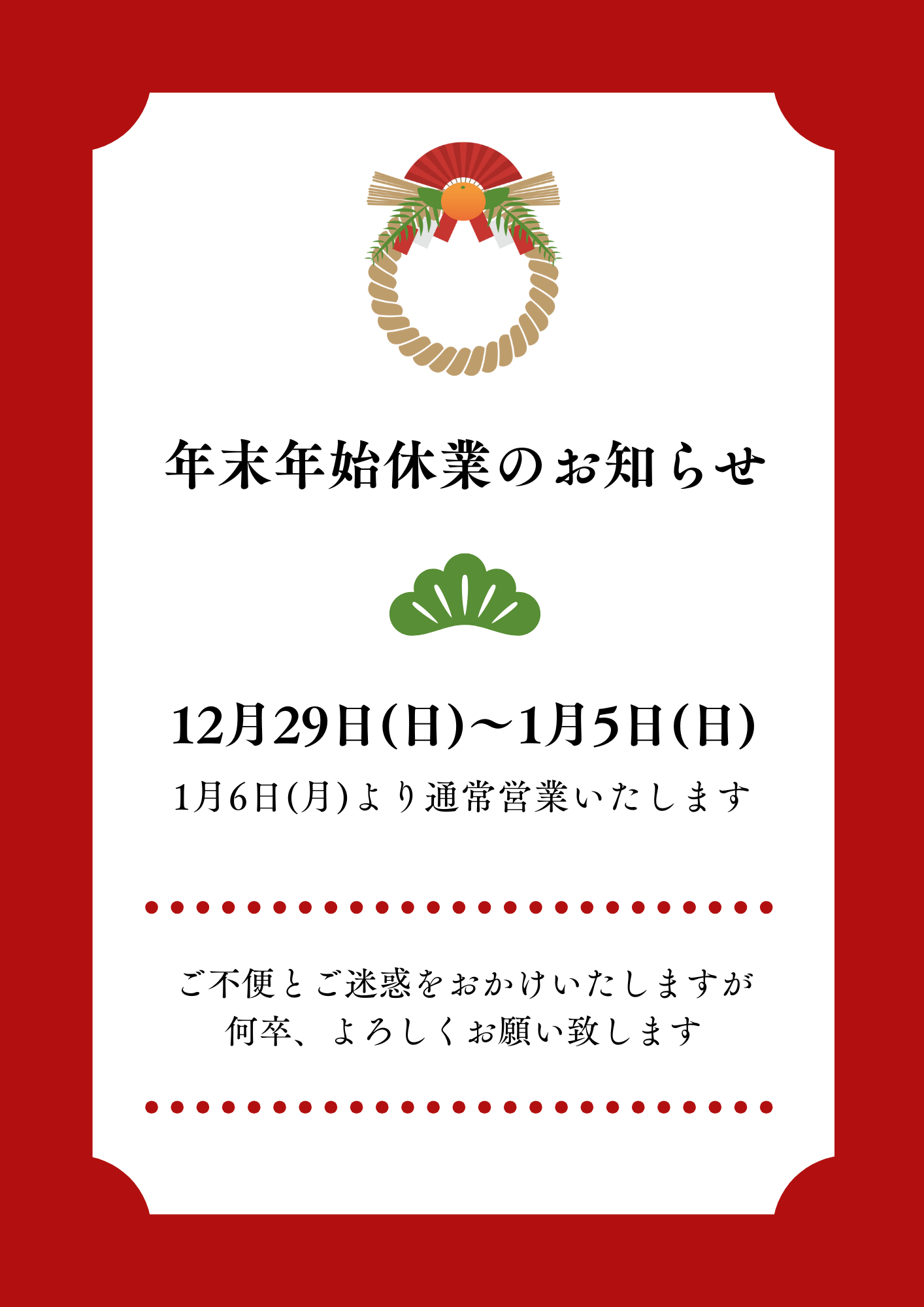 年末年始 休業のお知らせ