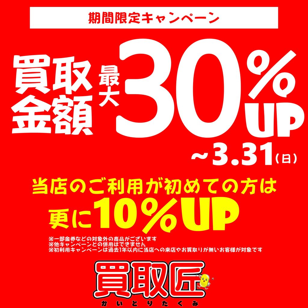 2024年3月31日までの期間中は買取金額が最大で30%UPします!